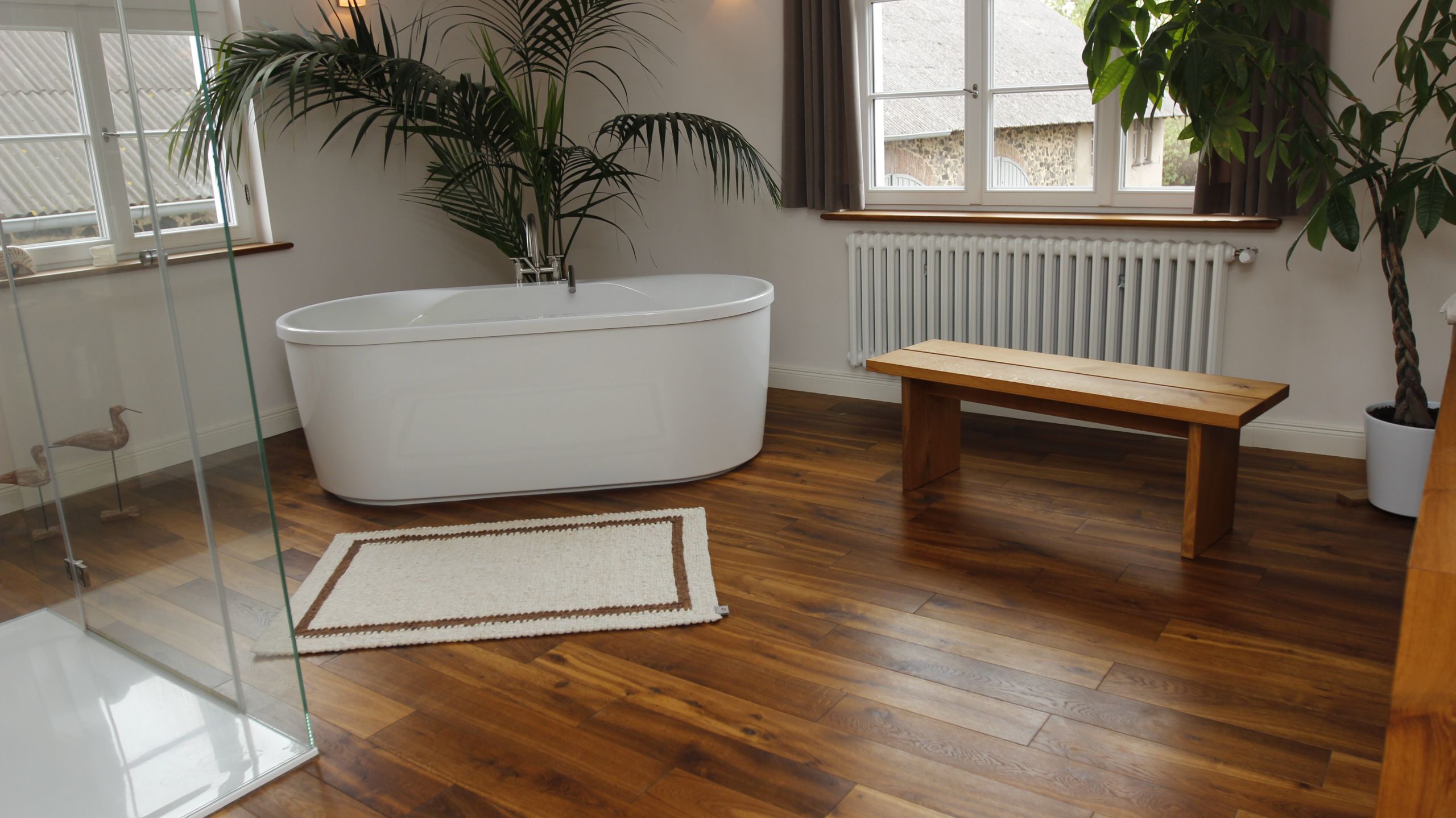 Auf Holzkonsrtuktion verschraubt, fest verklebt oder schwimmend verlegt. Die Diele überzeugt auf jedem Untergrund.